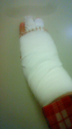 ちなみに左ひざも包帯ぐるぐるになってます。